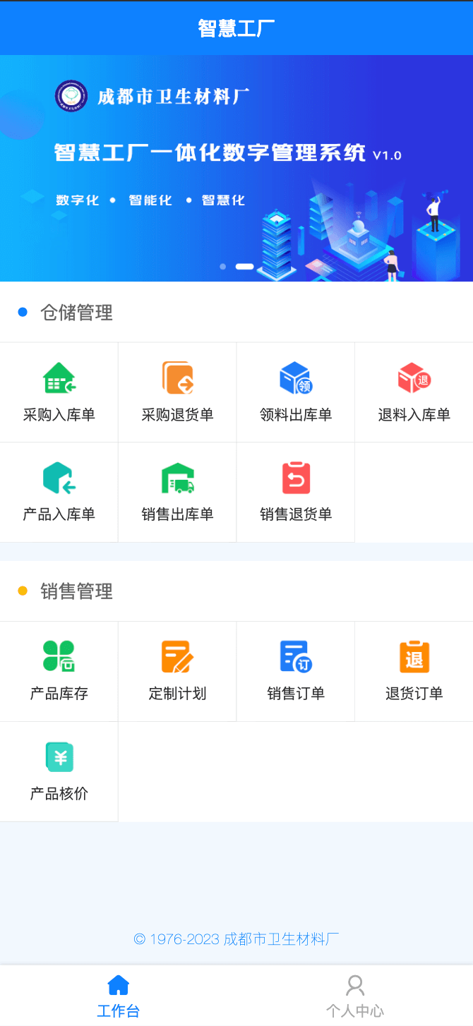 【成都市衛(wèi)生材料廠】智慧工廠一體化數字管理系統V1.0
